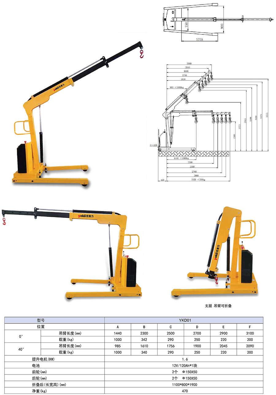 ● 注意:吊臂越長對應(yīng)載荷越小請注意對應(yīng)載重,確保安全。