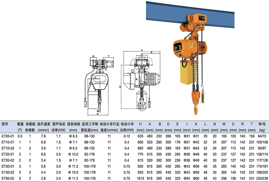 ● 環(huán)鏈電動葫蘆自重輕,尺寸小。